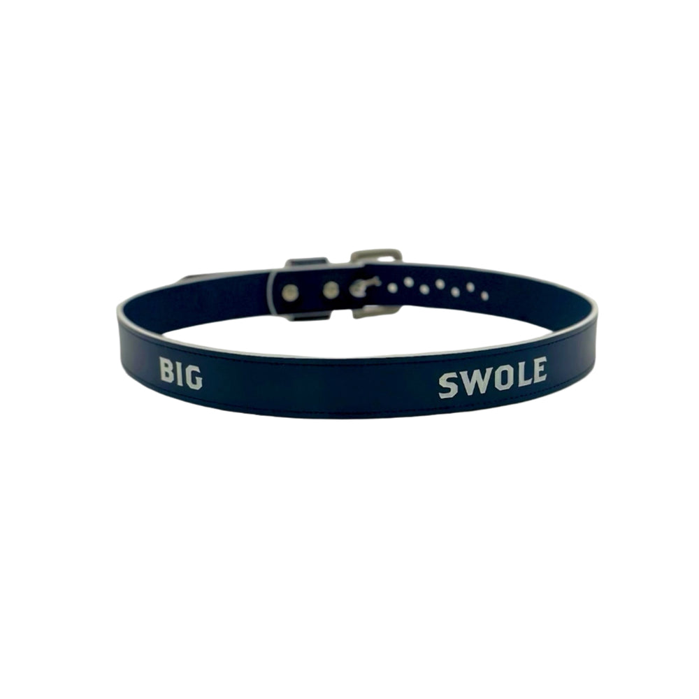 - White BIG SWOLE outside the belt loops on the back